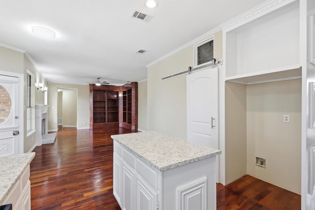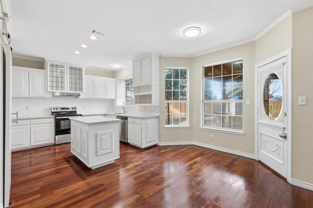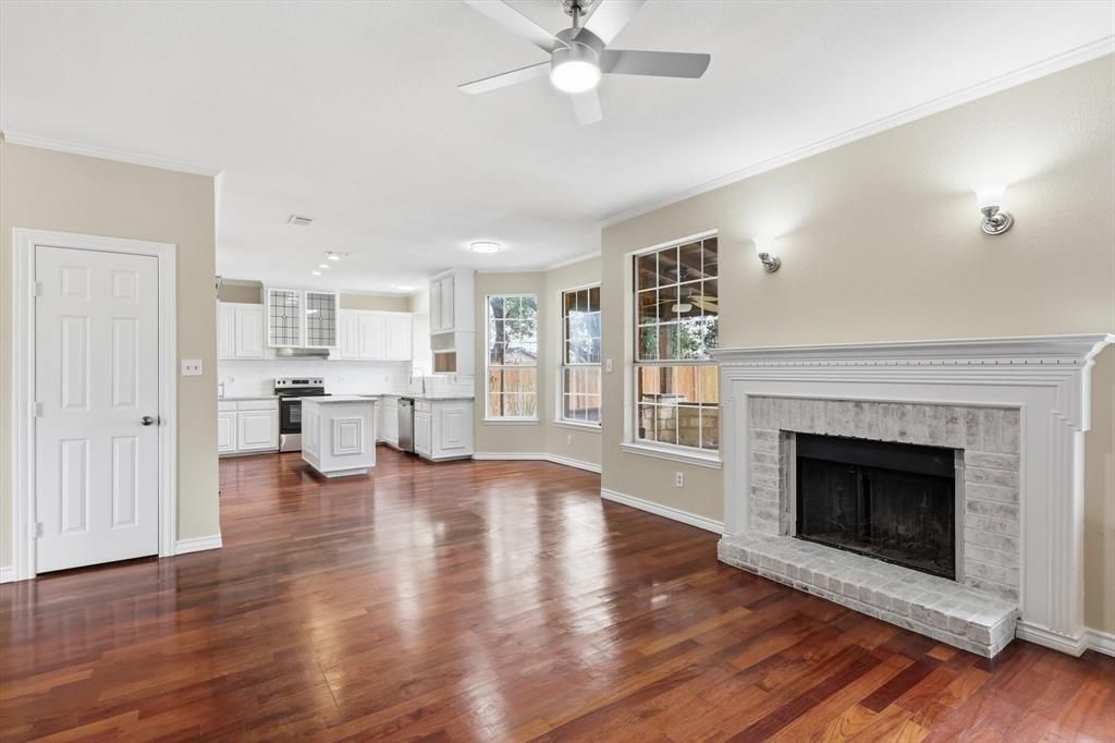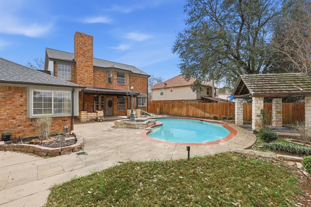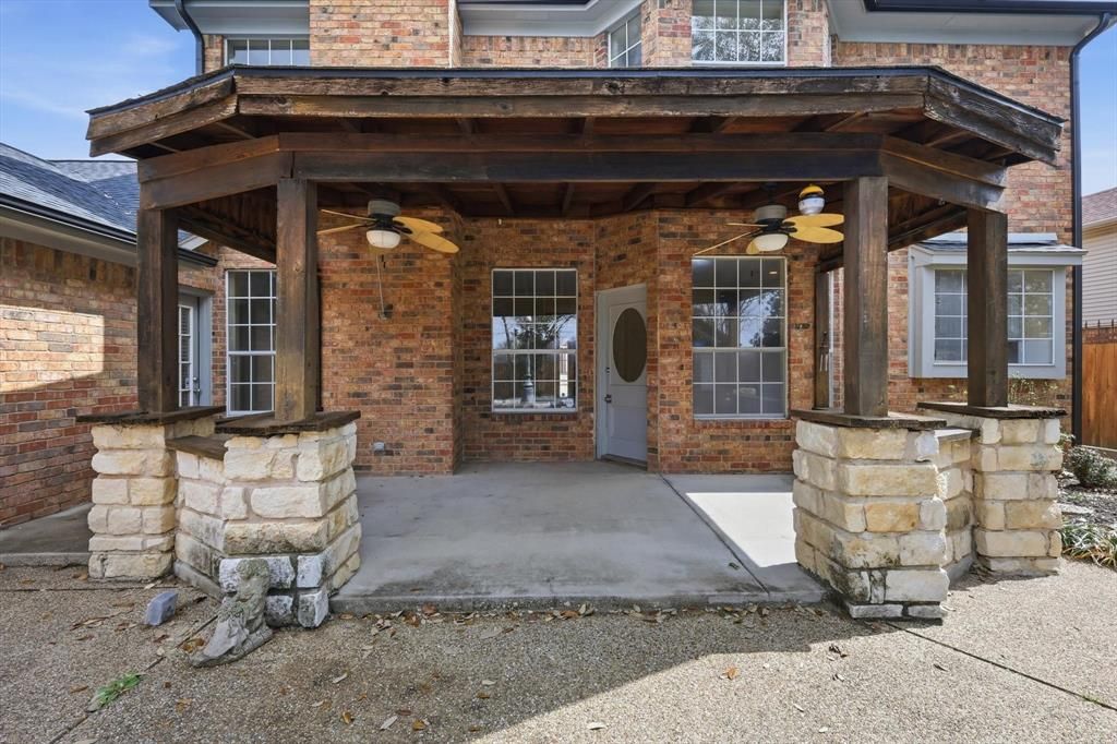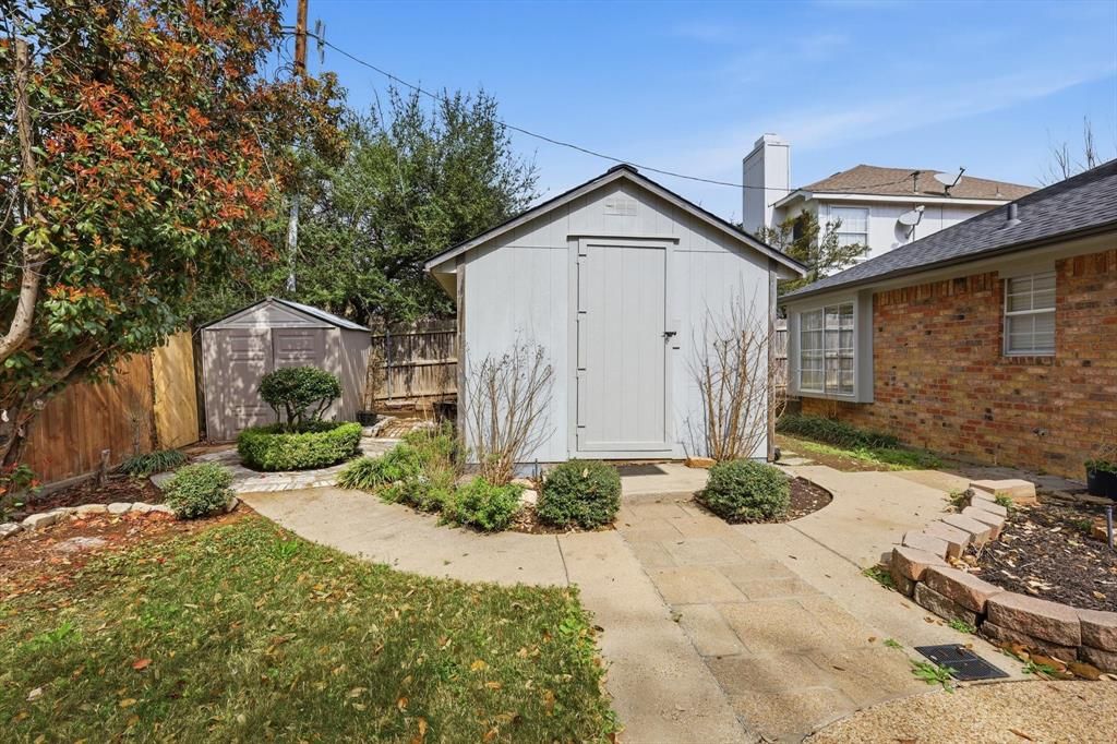 Beautifully updated home in an exceptional Arlington location with direct access to Stovall Park, one of the area's premier 52-acre community parks featuring a water park, scenic trails, sports facilities, playgrounds, and a picnic pavilion. Inside, the home features Brazilian cherrywood floors flowing through the kitchen, formal dining area, foyer, hallway, and utility room. Recent 2026 upgrades include a new oven, dishwasher, and range hood, along with new carpet throughout the home and fresh interior and exterior paint, creating a clean, move-in ready feel. The backyard is designed for relaxing and entertaining with a cedar and Austin stone patio and gazebo, offering a beautiful outdoor retreat. The property also includes two outdoor storage sheds, providing additional space for tools, equipment, or hobbies. This home offers thoughtful updates, inviting outdoor living, and immediate access to one of Arlington's most loved parks.