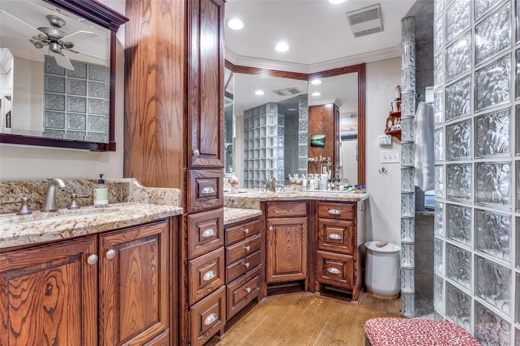 Welcome to this beautifully maintained Austin Stone two-story home located in the heart of Lake Highlands. Offering 4 bedrooms, 4 living areas, 3.5 baths, and a 2-car garage, this home perfectly blends comfort, style, and functionality with thoughtfully designed spaces ideal for everyday living and entertaining. Step inside to discover a bright open floor plan with hand-scraped hardwood floors, high-quality millwork, and abundant natural light throughout. The chef's kitchen opens seamlessly to the family room and features marble counter tops with a 3 inch slab exotic granite bar, stainless steel appliances, ample cabinetry, and a stunning Ermitage wine cooler, creating the perfect gathering space for family and guests. A large open dining room provides an inviting setting for hosting meals and celebrations. The primary suite offers a private retreat, complete with California Closets, direct access to the backyard deck, patio, and outdoor shower, and a luxury spa-inspired bath featuring granite countertops, hardwood flooring, a large walk-in shower, and elegant custom finishes. Downstairs includes a private study and a large paneled den, both with built-in cabinetry, providing excellent work and relaxation spaces. Upstairs, you'll find a spacious game room along with two bedrooms connected by a Jack-and-Jill bath, perfect for family or guests. Outside, enjoy the private backyard with custom pool, deck, patio, and pergola, ideal for relaxing evenings or weekend gatherings. Conveniently located near shopping, dining, schools, and major commuting routes, this home offers the perfect balance of peaceful neighborhood living with easy access to everything Lake Highlands has to offer. Don't miss the opportunity to make this exceptional home yours.