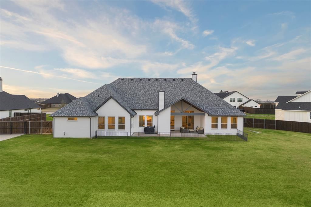 OPEN SUNDAY MARCH 8TH 2-4 PM. Tucked away on a quiet cul-de-sac in Dove Meadows in Waxahachie, TX, this single-story Elmwood home sits on over an acre backing to a greenbelt"”offering the privacy and space buyers consistently ask for. Located in Ellis County and outside city limits, this one-owner home features a functional split floor plan with 4 bedrooms, a dedicated office, game room, and 3 full bathrooms, providing flexibility for everyday living, guests, or working from home. The main living area showcases vaulted ceilings with wood beams, a fireplace focal point, and large windows bringing in natural light while overlooking the backyard and greenbelt beyond. The spacious kitchen"”one of the sellers' favorite features"”is designed for entertaining, open to the living and dining areas with a large island for seating, built-in cabinetry throughout, and a dedicated dining space with additional built-ins for storage and serving. Buyers will appreciate the modern finishes throughout, including light wood cabinetry paired with white uppers, quartz countertops, black hardware, updated lighting, and warm neutral tones that make the home feel current and move-in ready. The primary suite offers a true retreat with a freestanding soaking tub, oversized walk-in shower, dual vanities, and a large walk-in closet. Secondary bedrooms are well-sized with walk-in closets and access to full bathrooms. Step outside to the covered patio with fireplace overlooking a private backyard backing to a greenbelt, creating a peaceful setting with no rear neighbors and plenty of room to add a pool or additional outdoor living. The 3-car garage, extended driveway, and 20x20 shop with electric add versatility for storage, hobbies, or workspace. Homes offering 1+ acre lots, privacy, and this level of finish in Dove Meadows in Waxahachie rarely come available"”especially in a tucked-away cul-de-sac setting outside city limits in Ellis County.