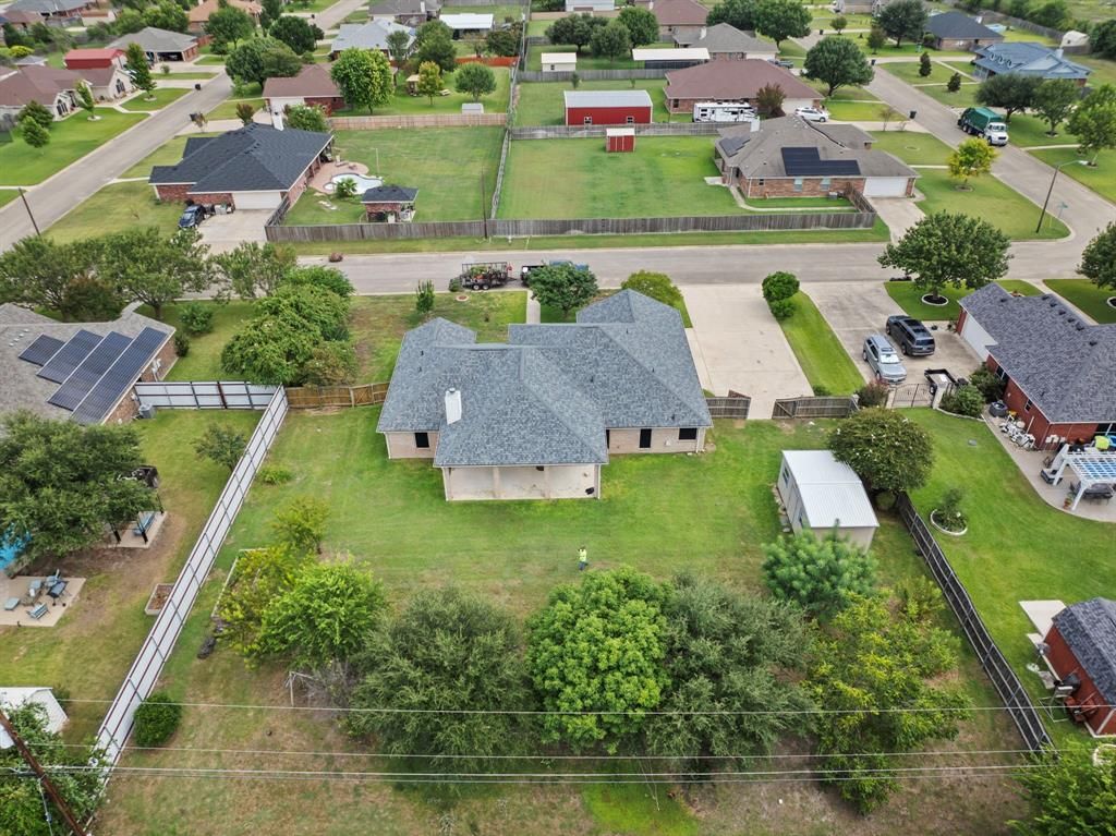 Seller offering $5,000 for buyer's closing costs, no HOA, over .5 acres! Spacious Living, Room to Breathe, and No Backyard Neighbors! Welcome to your slice of serenity! Sitting on half an acre with no HOA, this well-loved home has so much to offer"”starting with no neighbors behind you for that extra dose of privacy and quiet. The spacious backyard features mature, producing fruit and pecan trees, perfect for anyone who enjoys nature, fresh harvests, or a shady spot to relax. Step inside to discover a warm, inviting layout with both a formal dining room and a cozy breakfast area"”great for hosting or enjoying a slow morning with coffee. The primary bedroom is privately located on its own side of the home, giving you a peaceful retreat at the end of the day. Built by a reputable quality builder and well-maintained throughout, this home also includes solar screens to help with energy efficiency and Texas heat. A sturdy, well-built shed out back is perfect for storage, gardening tools, or weekend projects. Nestled on the outskirts of town in a beautiful neighborhood, this property gives you that hard-to-find balance of space, privacy, and convenience"”with no HOA rules holding you back. If you're looking for a home that offers charm, comfort, and a little extra breathing room, 1203 Hummingbird might just be your perfect match.