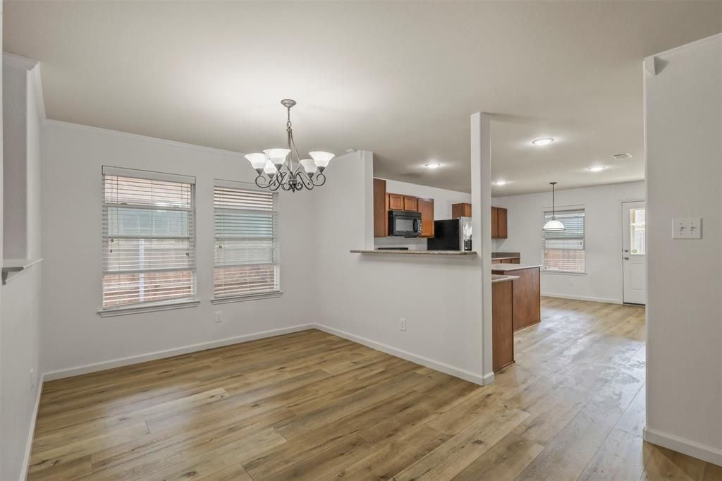 MOVE-IN-READY gem!! Conveniently located near shopping centers and within the Award-Winning Northwest ISD, this home boasts an expansive open floor plan . The generous living space features a cozy wood-burning fireplace, flowing seamlessly into dual dining areas. The kitchen shines with granite countertops, a spacious island, abundant cabinetry, and a walk-in pantry. Throughout, enjoy durable vinyl plank flooring with NO CARPET. All bedrooms offer ample scale and substantial closet space, while solar screens on the windows enhance energy efficiency. Outside, professional landscaping includes full gutters, and the backyard impresses with a large covered patio for outdoor enjoyment. This opportunity WON'T LAST! Motivated Seller"”Schedule a viewing today!