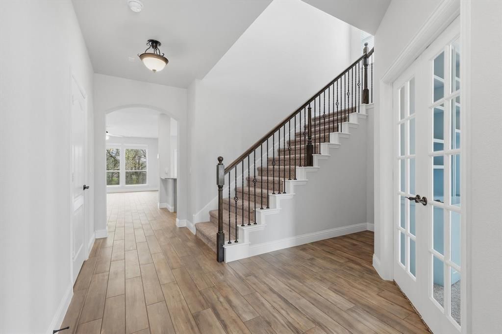 Welcome to 4425 Massey Meadows in Midlothian, a move-in ready home offering space, comfort, and a peaceful backyard setting that's hard to find. With 4 bedrooms, 2.5 baths, and multiple living areas, this well-designed home blends functionality with thoughtful updates throughout. As you enter, you're greeted by a private front office with French doors, perfect for working from home or managing daily tasks. The room enjoys terrific natural light and features two walls of custom built-in cabinets, providing exceptional storage. Custom top-down, bottom-up shades allow you to maintain privacy while still letting in beautiful natural light. The main living areas downstairs feature durable plank tile flooring, giving you the look of wood with easy maintenance, ideal for busy households and pet owners. The primary suite is conveniently located downstairs, providing a private retreat and features engineered wood floors. Upstairs, you'll find a large loft area that works perfectly as a second living room, game room, media space, or play area. This flexible space adds valuable room for relaxation or entertaining. Also upstairs are three generously sized bedrooms, a full hall bathroom, and a large hall closet that offers excellent additional storage. Two of the upstairs bedrooms overlook one of the home's best features"”the peaceful backyard setting. The property backs to a greenbelt and pond with a walking trail, providing added privacy and scenic views with no immediate neighbors directly behind you. Just off the dining area is a cozy screened porch, the perfect place to enjoy your morning coffee while listening to birds chirp"”bug free. Beyond that, the outdoor space continues with an extended patio and pergola. A small storage shed provides convenient space for lawn tools and outdoor equipment. With recently installed new carpet, durable flooring, and a functional layout, this move-in ready home offers both comfort and convenience in a desirable Midlothian location.