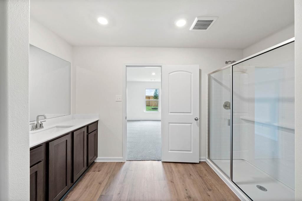 The Sabine floor plan features three bedrooms, two bathrooms and an attached two-car garage. The chef-ready kitchen boasts wonderful upgrades, making cooking and cleaning a breeze. Adjacent to the kitchen, the dining room is bathed in natural light, creating an inviting space for family meals. The spacious family room provides a cozy ambiance for relaxation and entertainment. The versatile flex space can be tailored to unique needs, whether as a home office, workout space or guest room. The master suite includes an expansive bedroom, a spa-like bathroom with a grand vanity and glass walk-in shower, and a generous walk-in closet. Completing this home is a fenced backyard with a covered patio for safe outdoor fun.