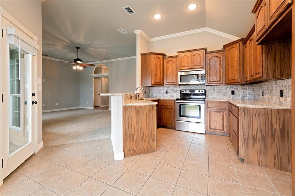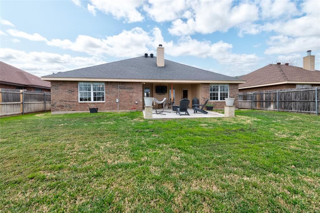 Nestled in a quiet neighborhood on the edge of town, this inviting home features an open-concept kitchen, dining, and living area designed for comfortable everyday living and easy entertaining. The primary suite offers a relaxing retreat with a walk-in shower, double vanity, large soaking tub, and two walk-in closets, providing both comfort and ample storage. Step outside to enjoy the oversized back patio, ideal for outdoor gatherings or relaxing evenings at home. This charming home combines comfort, functionality, and a peaceful location"”making it a wonderful place to call home.