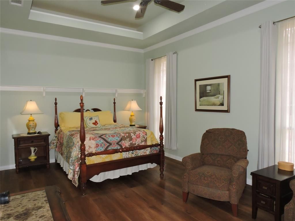 Welcome to Country Bend Drive...This custom built, one owner home is like no other. Meticulously maintained, this lovely home offers 3 bedrooms, 2 full bathrooms, breakfast area, outdoor patios, and a 3-car garage, all on 1+ acres of land. Hardwoods married with custom tile work and luxury vinyl plank flooring bathe the home in warmth under 10-foot ceilings with custom lighting. Crown moulding accentuates each room, and natural light floods the home. The Austin stone, wood burning fireplace serves as the focal point of the living room flanked by custom shelving. Already perfectly landscaped, this home is a gardener's delight with prepared beds for both sun and shade plantings with room to grow! Only 30 minutes from Dallas for an easy commute. Lots of shopping, dining, and healthcare within minutes. This is truly a home to be loved.