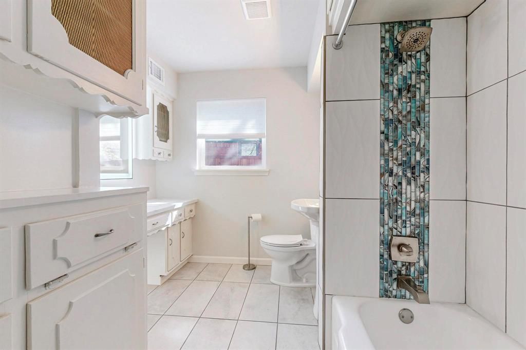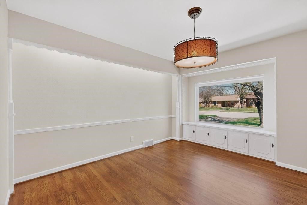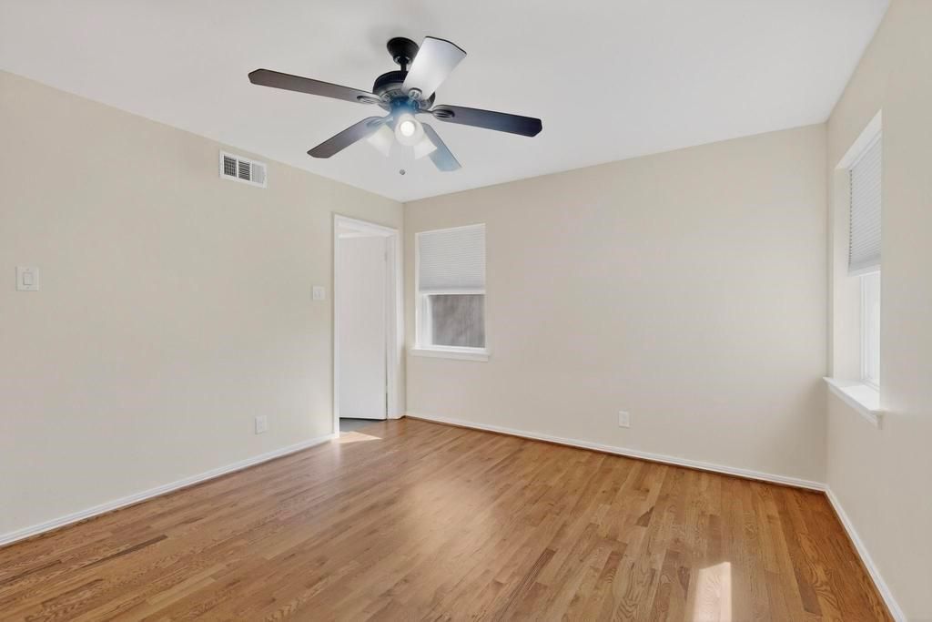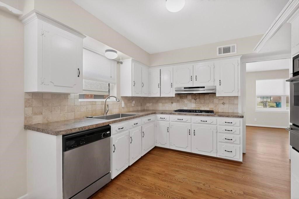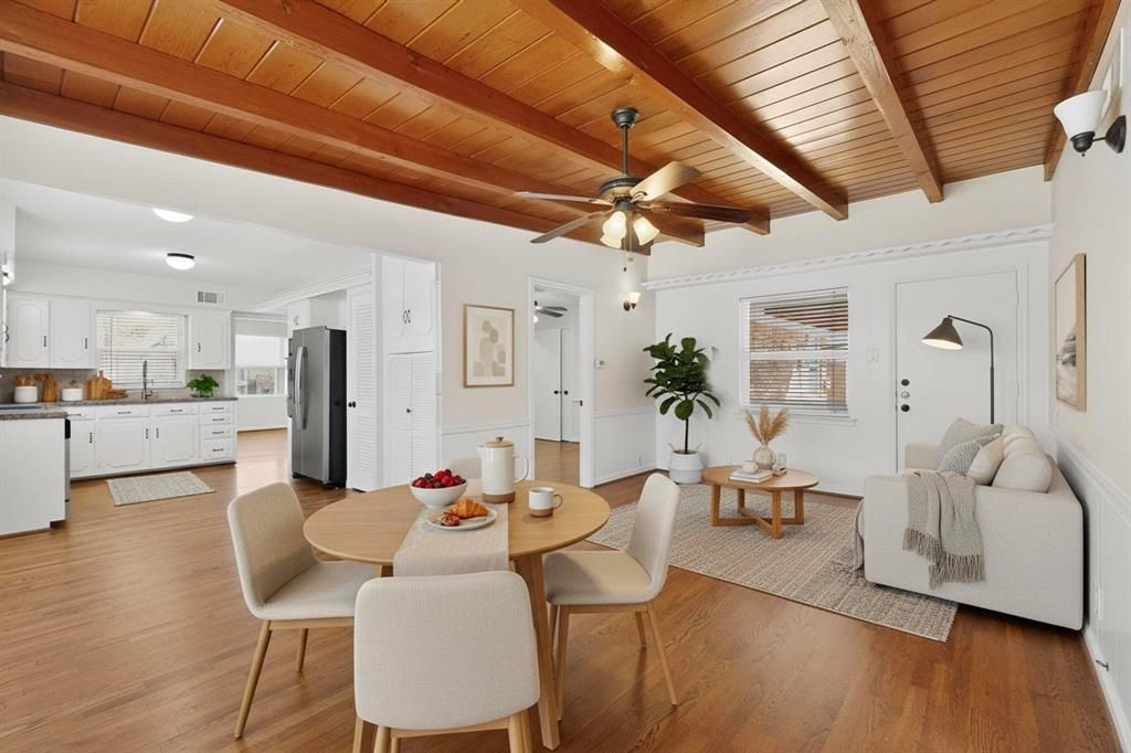 Charming ranch-style home tucked away on a cul-de-sac in an established East Dallas neighborhood, just an 8 minute drive to the Dallas Arboretum and White Rock Lake. Beautiful hardwood floors flow throughout the living areas and bedrooms, complemented by freshly painted interiors and well maintained finishes. The flexible floor plan offers two living areas and two dining spaces, including a formal dining area in the front living room and an eat-in kitchen dining area. The third bedroom also works well as a home office or study. Both bathrooms have been nicely updated with remodeled tile, fixtures, and finishes. The home has been wonderfully maintained over the years with numerous improvements including Marvin Infinity replacement windows (2023), stainless steel kitchen sink and stainless steel refrigerator (2023), plumbing cut-offs added throughout the home (2023), HVAC system (2012), and water heater (2018). The backyard backs to White Rock Creek and features a covered patio. An 8 foot wooden privacy fence was added along the driveway (2023), providing additional privacy to the outdoor space. Attached two car garage.