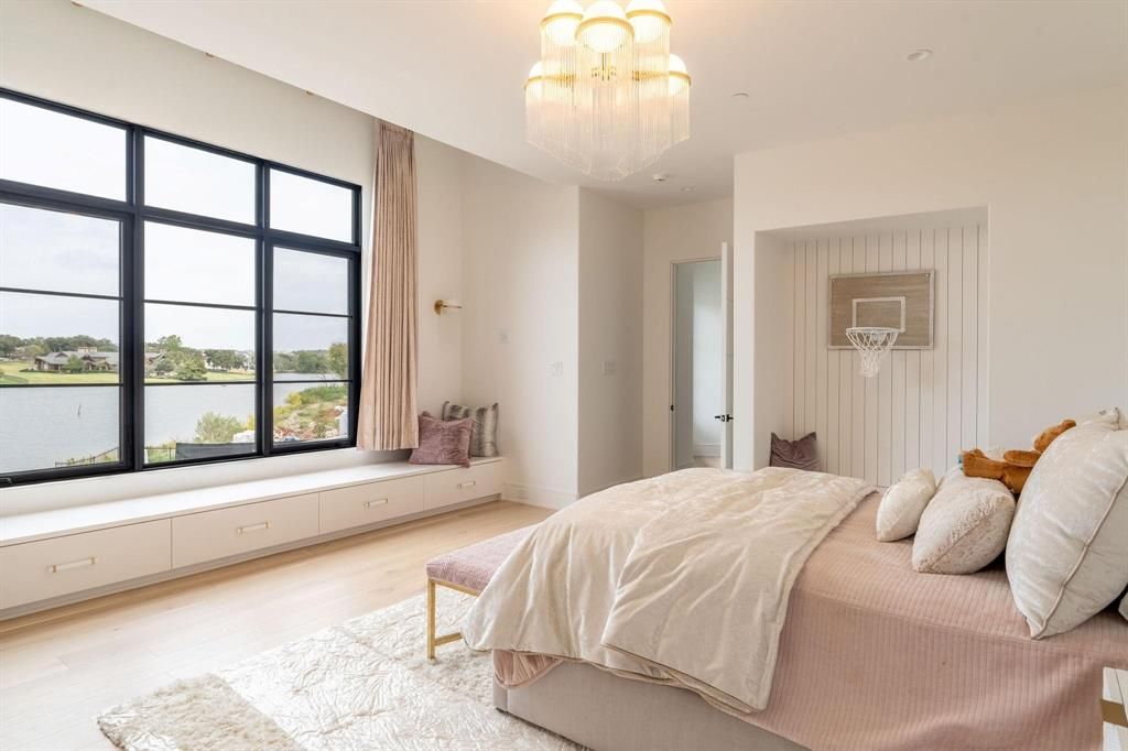 Welcome to a one-of-a-kind modern transitional estate built by Cary Hy nestled within the prestigious, gated community of Quail Hollow in Westlake. Completed in 2024, this magnificent lakefront residence combines cutting-edge luxury with serene natural beauty. With over 15,000 square feet of exquisitely designed interior space, the property offers a wealth of amenities and extraordinary upgrades. The residence features an infinity-edge pool with captivating fire features, seamlessly blending into the lake views. An expansive six-car garage also provides space for boat storage. The main level boasts a grand master suite also complete with sweeping lake views, his-and-hers closets, and discreet access to a secure safe room. Entertainment and recreation are paramount, with a private pickleball court, full bar, oversized theater, sporting simulation center, fully-equipped gym, podcast studio, kids' gaming and homework lounge, and even a gift-wrapping room. A stylish bunk room adds charm, while the extensive outdoor living area offers a covered entertainment space, complete outdoor kitchen, and integrated media, creating the ultimate experience for lakeside living. This estate represents an unparalleled lifestyle in Westlake's most exclusive community. Walk Through video and additional photos available to qualified buyers.