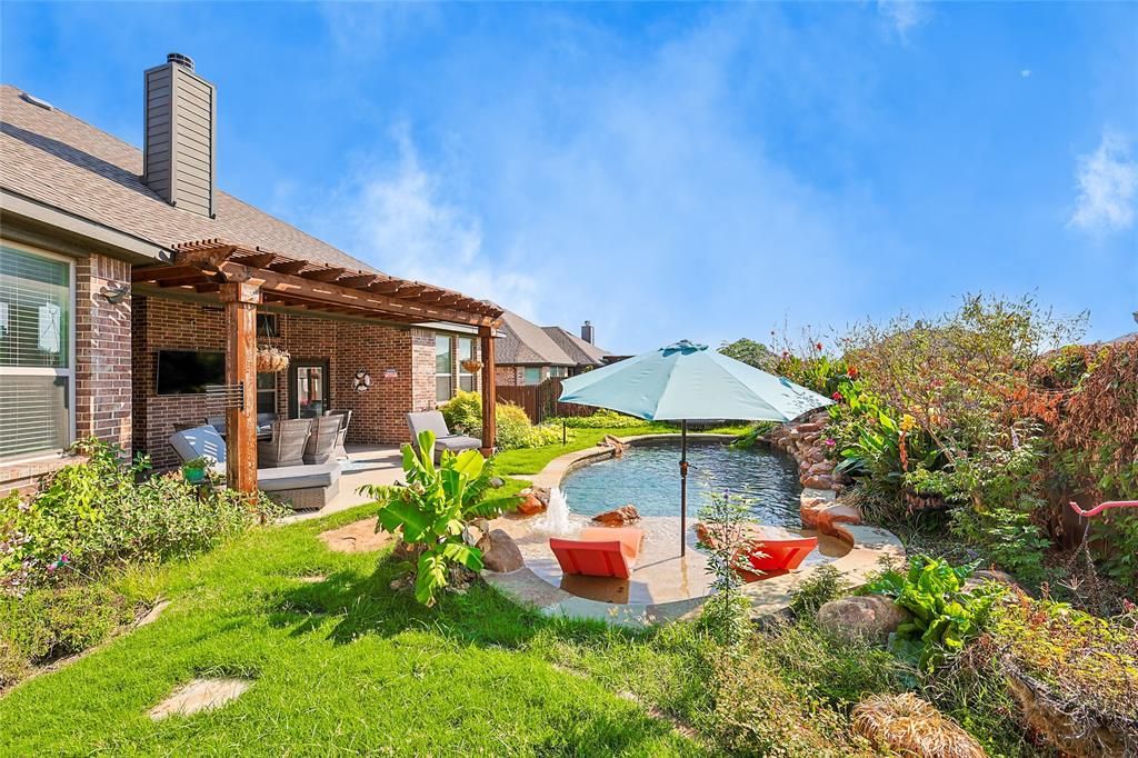 Stop taking vacations - start living in one! Don't miss this opportunity to own this fully furnished, turnkey home with an incredible backyard oasis in Waxahachie, TX. Perfect for investors, short-term rental potential, or families looking for a move-in ready property, this spacious home offers 3,209 sq ft with 5 bedrooms, 3 full baths, 2 half baths, and a 2-car garage. Step inside to a bright and inviting living space featuring soaring ceilings and abundant natural light that fills the home, creating an open and airy atmosphere throughout. Beautiful LVP flooring runs through the main living areas, complemented by carpet in the bedrooms and tile in the bathrooms. The open floor plan seamlessly connects the living room, dining area, and kitchen, making it ideal for entertaining or comfortable everyday living. The upgraded kitchen features stainless steel appliances, quartz countertops throughout, a large eat-in island, upgraded appliance package, and an extended pantry for additional storage. The home also includes crown molding, a spacious laundry room with added cabinetry and folding station, and a remodeled upstairs layout that created a second suite with its own closet and en-suite bath. The true highlight of this home is the resort-style backyard designed for year-round enjoyment, featuring an $82K custom pool, extensive professional landscaping, two pergolas, and an oversized covered patio area perfect for outdoor living and entertaining. Additional upgrades include an expanded concrete parking pad for a 3rd car and multiple smart home features. Conveniently located near major roads, schools, parks, shopping, dining, and everyday amenities, this home offers outstanding value in a prime location with no HOA. Whether you're looking for a ready-to-operate investment property or a beautifully furnished home to move right into, this property offers comfort, style, and convenience. Don't miss the opportunity to make it yours - schedule your private tour today.