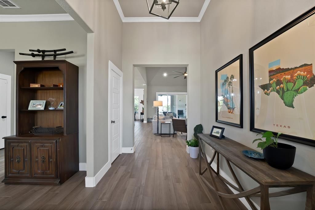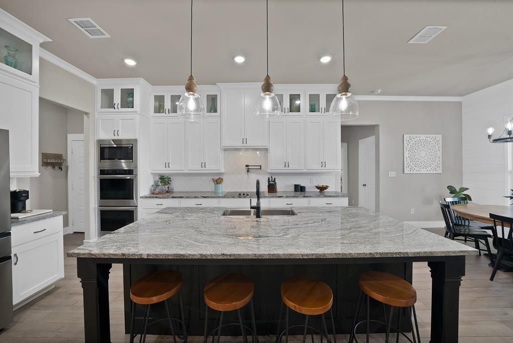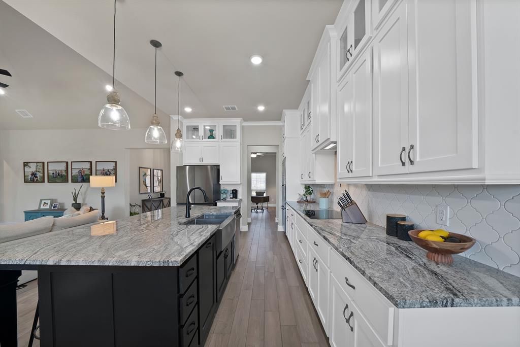 Built in 2022 and set on 2 fully fenced acres, this beautifully finished single-story home offers the perfect blend of modern comfort and country living just outside Weatherford. With 2,913 square feet, the thoughtfully designed layout features 4 bedrooms, 2.5 baths, a spacious game room, and a versatile flex room that can serve as a formal dining area, home office, or additional living space. The open-concept living area is ideal for both everyday living and entertaining, with quality finishes and attention to detail throughout. The kitchen flows seamlessly into the main living space, creating a welcoming central hub for gathering. The private primary suite provides a relaxing retreat, while the additional bedrooms offer ample space for family or guests. A dedicated game room adds extra room to spread out for media, hobbies, or play. Outside, the fully perimeter-fenced 2-acre property features an electric entry gate and plenty of room to enjoy the outdoors. Light deed restrictions allow for flexibility while still maintaining the area's appeal, and livestock is permitted, perfect for those looking to embrace the rural lifestyle. Additional upgrades include water softener and reverse osmosis systems for enhanced water quality, extended driveway fro extra parking and added irrigation both front and rear. With no HOA and room to live the country life while remaining convenient to Weatherford amenities, this property offers the space, freedom, and modern construction you've been searching for.