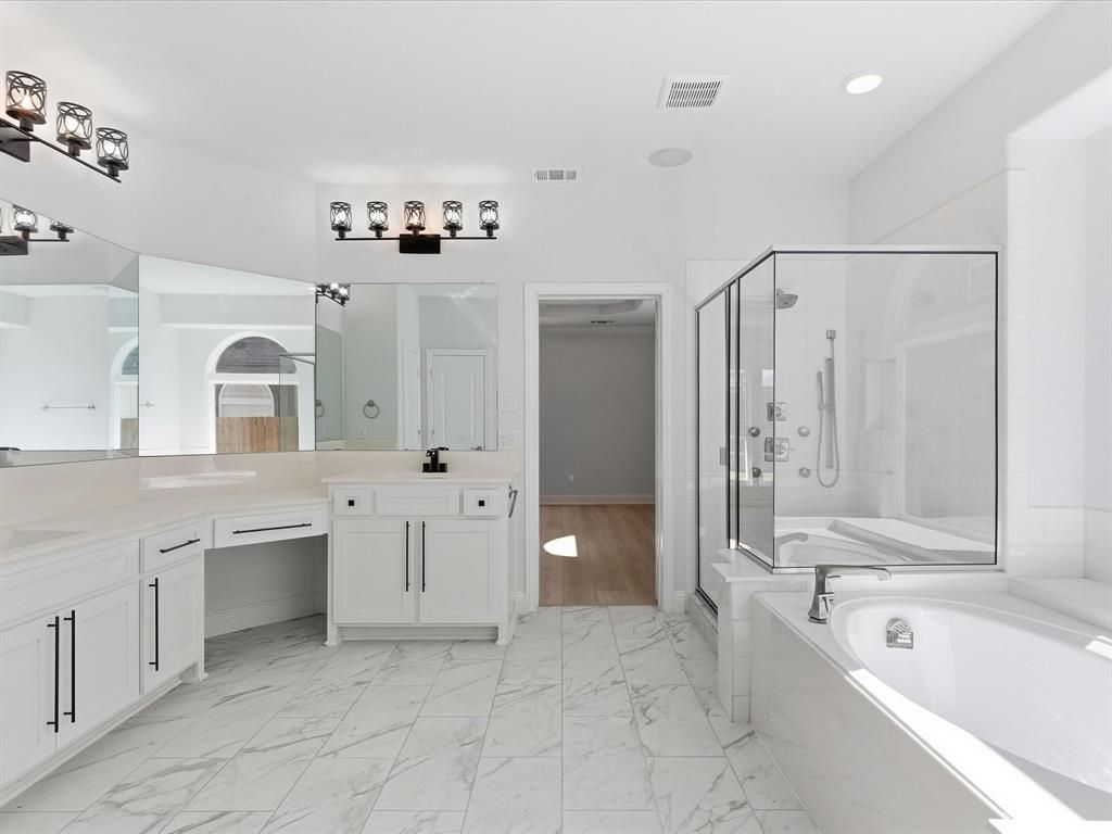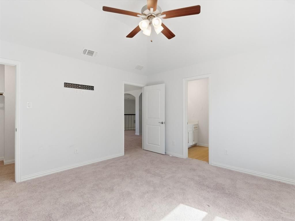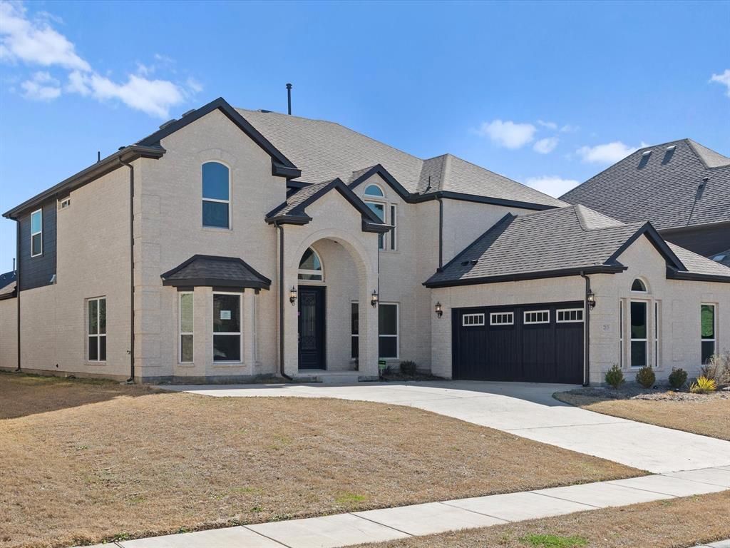 Stately light brick home with dramatic arched entry, grand double doors, and three-car garage located in the Villages at Hurricane Creek in Anna. Step inside to a stunning two-story foyer highlighted by a cascading crystal chandelier and an open second floor overlook that creates an impressive first impression. Designed by First Texas Homes, the popular Stonehaven floor plan offers a spacious and versatile layout with multiple living and entertaining spaces. The main living area is filled with natural light from sliding glass doors overlooking the backyard. The gourmet kitchen features a large California island, pot filler, stylish backsplash, and open flow to the main living areas"”perfect for gatherings. Upgraded Denton and Sonos speakers enhance the first-floor entertaining space. The oversized primary suite features tray ceilings and a spacious ensuite bath with walk-in shower, bench seating, handheld shower wand, and bidet. A unique passthrough connects the primary bath to the oversized walk-in closet and an adjoining flex room ideal for a nursery, workout space, or private retreat. Upstairs you'll find additional bedrooms, a loft-style living area overlooking the downstairs, and a dedicated theatre-style media room with wet bar. With its distinctive architectural features, generous layout, and multiple flexible living spaces, this home offers an excellent opportunity to personalize and make it your own.
