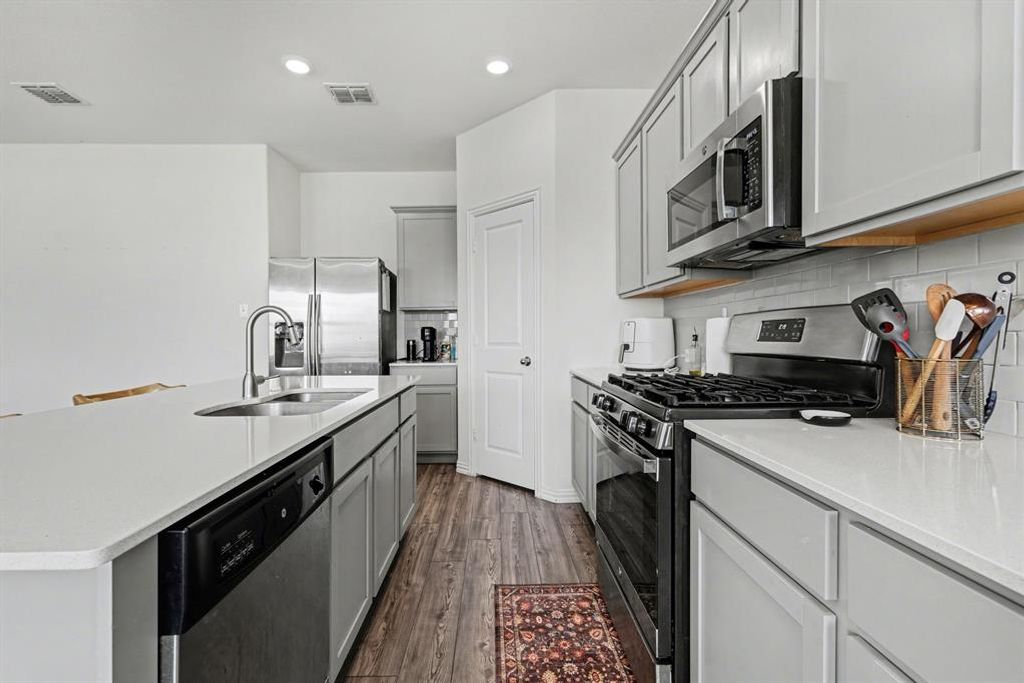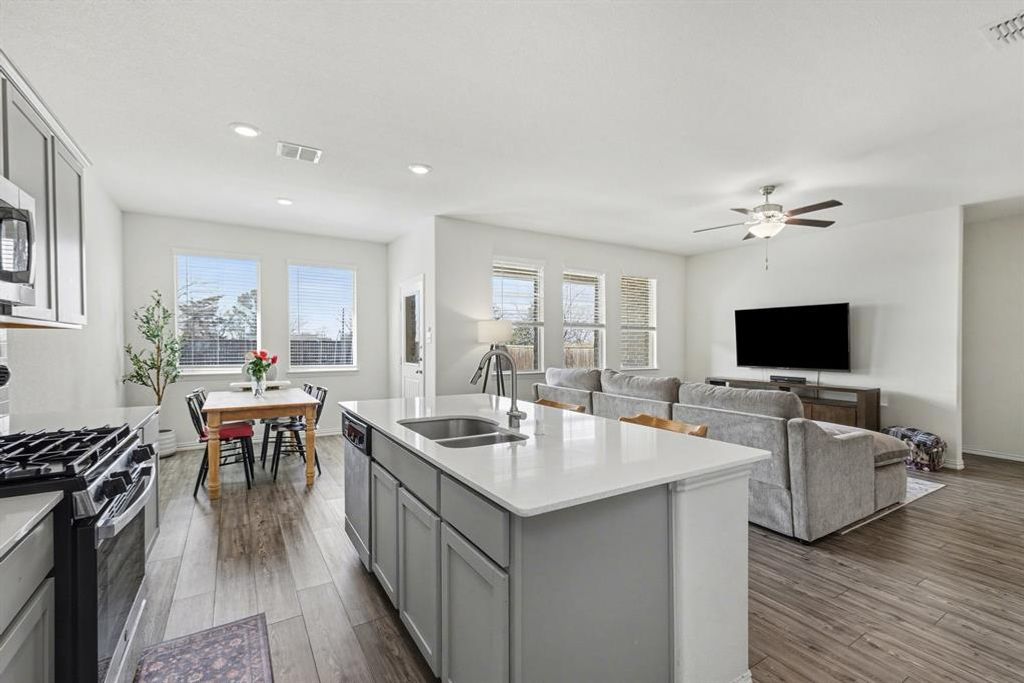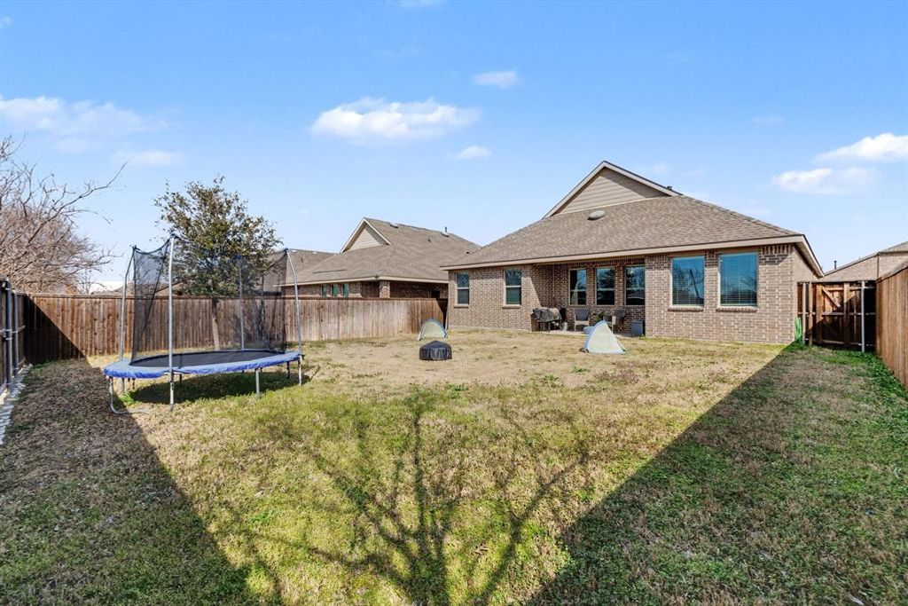 Gorgeous 4 bed 2 bath home with great open floor plan in the Sutton Field master-planned community with Prosper ISD. The living room has spacious space with large windows that let in tons of natural light. Luxury vinyl flooring throughout whole house including all bedrooms. Stunning kitchen boasts granite countertops, stainless steel appliances, a large island with seating. Master Suite includes dual sink vanities, tub and large tiled shower. The backyard with covered patio make this home perfect for entertaining family and friends. Unbeatable location with quick access to Highway 380 and the Dallas North Tollway. Close to Costco, HEB, Kroger, and Walmart for everyday convenience. Just 15 minutes from PGA and the upcoming Universal Studios. The acclaimed Prosper ISD ensures excellent education opportunities. Enjoy onsite amenities, including a playground, swimming pool with a splash park, clubhouse, tennis court, pavilion, garden and more.