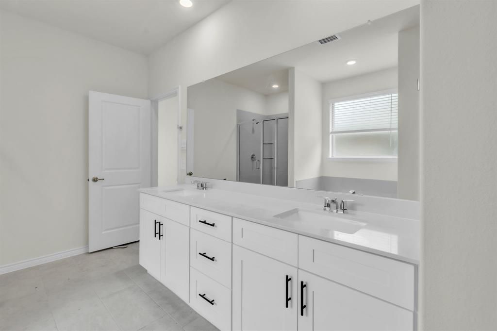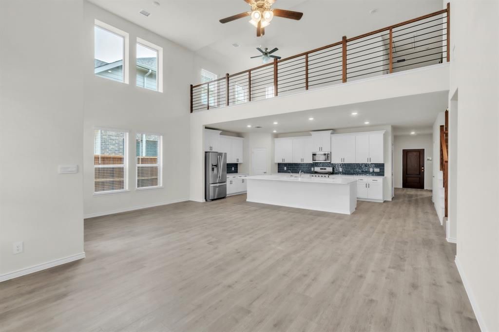 The Englewood floor plan is a luxurious 3,149 sq. ft., 4-bedroom, 3-bathroom, 2-story home located in the prestigious Hidden Lakes community in McKinney, TX. Set on a spacious 50-ft lot, the home's brick and rock exterior, lush landscaping, full irrigation system, and charming front yard tree create an impressive curb appeal. The kitchen is a chef's dream, featuring painted cabinets, sleek granite or quartz countertops and stainless steel appliances. The massive island seats up to five people, making it perfect for gatherings. The kitchen overlooks the expansive living area, which boasts soaring 2-story ceilings, large windows for abundant natural light, and a cozy gas fireplace. The grand wrought iron staircase adds sophistication and leads to an upstairs loft with a modern railing overlooking the living room, offering a luxurious and open feel. The spacious primary suite includes a spa-like bathroom with a fully tiled walk-in shower, glass enclosure, bench, and dual vanities. Designed for modern living with luxury details throughout, the Englewood floor plan is a must-see. Contact us today to schedule a tour and experience the stunning Englewood plan in person!