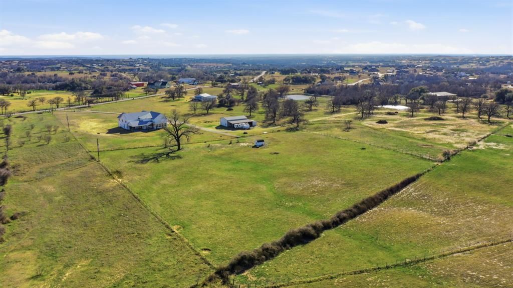 10 Acre Brock ISD Estate with 2023 Custom Modern Farmhouse and Ag Exemption. Located outside city limits with a Weatherford address and few known deed restrictions, this rare property offers privacy, flexibility, and scenic acreage with open pasture, mature trees, established wild blackberry vines, and sandy soil ideal for horses or future horse facilities The impressive 6600 sq ft home was designed for both everyday living and entertaining with 7 bedrooms, 5.5 bathrooms, three living areas, and multiple dining spaces ideal for multi generational living. The chef inspired kitchen features a commercial grade gas range, oversized island, extensive cabinetry, generous prep space, and a massive walk in pantry with a second refrigerator. The open concept layout flows into spacious living areas anchored by a dramatic floor to ceiling fireplace crafted from reclaimed brick from a historic Weatherford farmhouse. The private primary retreat includes dual oversized closets, separate vanities, soaking tub, spa style bath, and an infrared sauna. A versatile 1500 sq ft bonus area with additional washer and dryer hookups offers potential for a mother in law suite, private apartment, guest quarters, or game room. Outdoor living includes covered farmhouse porches pre plumbed for an outdoor kitchen and wired for a future heated pool. The property also includes a 1500 sq ft workshop with electricity currently functioning as a functional fitness gym and batting cage, ideal for a home business, training facility, gym, or workshop. Located near several Parker County wedding venues, the property may offer potential for short term rental or Airbnb style accommodations for event guests. Additional infrastructure allows for a second residence with its own electric meter, septic system, and well connection. Enjoy peaceful 10 ag exempt acres with no city taxes while remaining minutes from shopping, dining, and about 5 miles from Target with easy access to Fort Worth