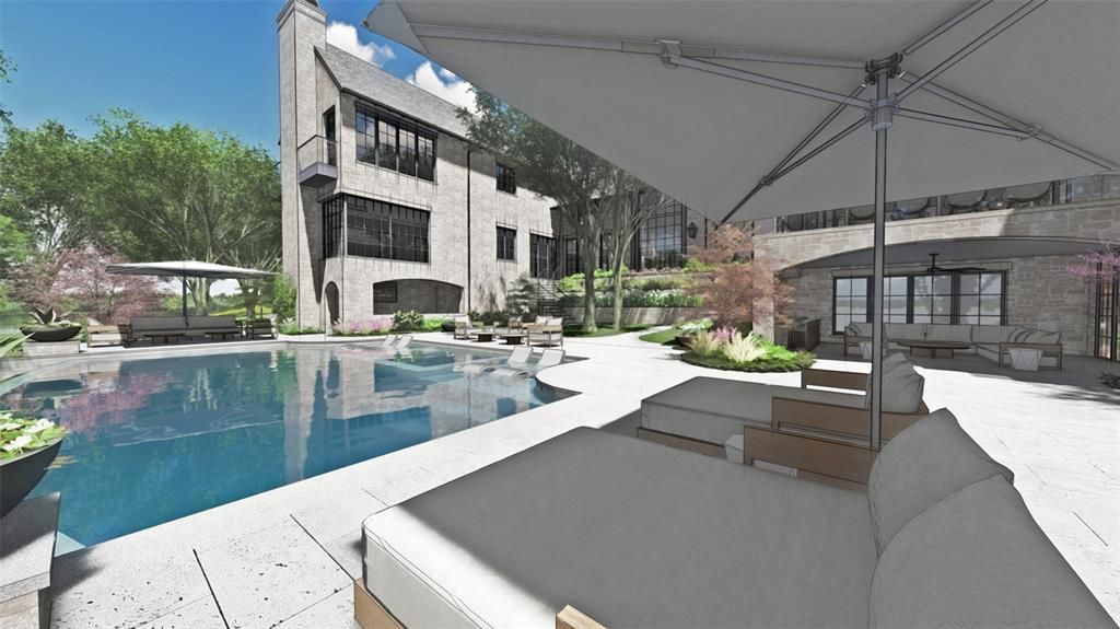 Poised on approximately 1.06 acres at the end of a private cul-de-sac in the exclusive Long Cove community on Cedar Creek Lake, this new-construction waterfront estate redefines lakeside luxury. Scheduled for completion in Summer 2026, it is the vision of architect Christy Blumenfeld, builder William Palmer, interior designer Michelle Nussbaumer, and landscape architect Lance Dickinson of DDLA Design"”renowned for creating timeless, design-driven retreats. A grand stone façade and layered landscaping set an unforgettable tone, welcoming you into a thoughtfully designed multigenerational retreat with sweeping open-water views from nearly every room. The main residence, approximately 14,030 square feet across three levels with elevator access, features a dramatic great room with vaulted ceilings, exposed beams, a grand fireplace, and walls of glass that open to expansive terraces and covered outdoor living with a fireplace and remote screens. The gourmet kitchen, outfitted with Wolf appliances, generous prep space, and open sightlines, is ideal for effortless entertaining. Five private bedroom suites and two custom bunk rooms comfortably accommodate up to twenty guests, complemented by custom hardwood floors, refined detailing, and warm natural materials throughout. A 1,682-square-foot carriage house offers three bedrooms, three baths, and additional bunk space"”perfect for guests or extended stays. Outdoors, enjoy a resort-style pool and spa overlooking the lake, multiple terraces for sun or shade, and a private two-slip boat dock. Two, two-car garages with a porte cochere and a 15-zone Daikin VRV HVAC system ensure comfort and efficiency. Crafted with stone construction and a slate roof, this estate is a true legacy retreat designed for generations to gather on the serene shores of Cedar Creek Lake.