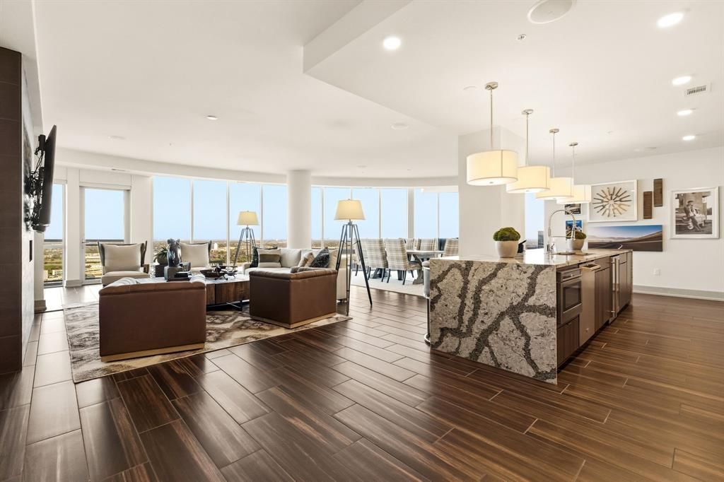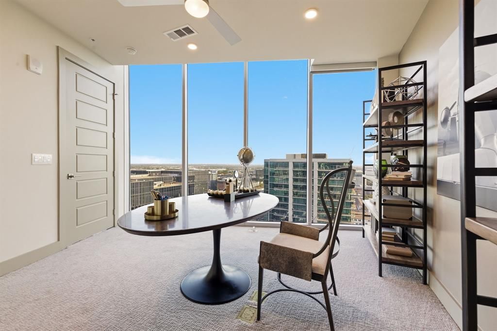 Located within Level 29, this fully furnished penthouse on the 29th floor offers a rare opportunity to experience elevated luxury living in the heart of Legacy West. Designed for those who value both sophistication and ease, this residence delivers a true lock and leave lifestyle with every detail thoughtfully curated. Expansive floor to ceiling windows frame panoramic skyline views, filling the home with natural light, while multiple private balconies extend the living space outdoors. Whether enjoying a quiet morning coffee or winding down in the evening, these outdoor spaces offer a seamless connection to the energy and views of Legacy West below. Inside, the open concept design flows effortlessly through multiple living spaces, including a refined main living area, an additional flex lounge, and a private office ideal for working from home or hosting in style. The chef's kitchen is outfitted with premium appliances, sleek cabinetry, and an oversized island, perfectly suited for both everyday living and elevated entertaining. The primary suite is a private retreat, complete with a spa inspired bath, generous closet space, and a serene, hotel like ambiance. A secondary bedroom with its own ensuite bath provides comfort and privacy for guests. Offered fully furnished with designer selected pieces, this penthouse is completely turnkey and available for short term lease, making it an ideal fit for executives, professional athletes, or anyone seeking a high end residence without compromise. Residents enjoy access to world class amenities, including a resort style pool, state of the art fitness center, valet, concierge services, and secure access. Just steps from the best of Legacy West, the location offers effortless walkability to premier dining, luxury shopping, and vibrant nightlife. A rare opportunity to lease a true penthouse at Level 29, combining elevated design, exceptional amenities, an unmatched lifestyle in one of North Texas' most sought after destinations.